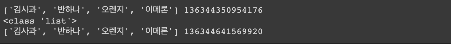 마찬가지로 id()함수를 통해 메모리 주소값이 변경되었음을 확인하였다.