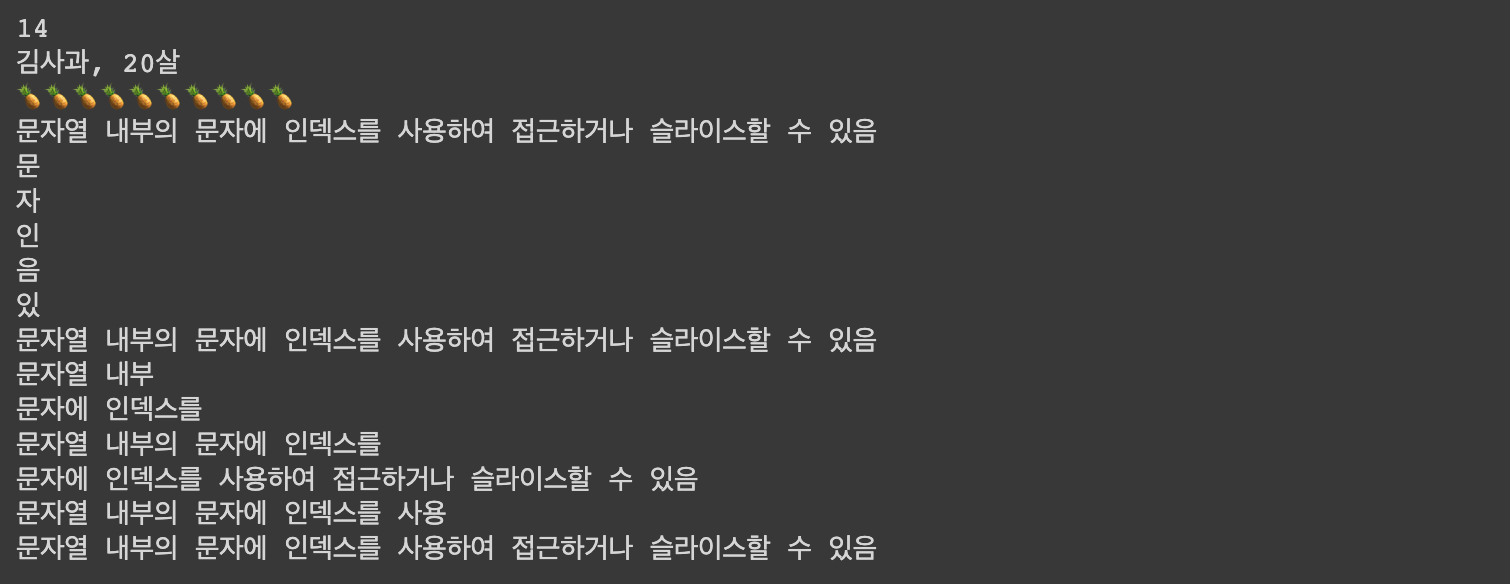 str1 = "문자열 내부의 문자에 인덱스를 사용하여 접근하거나 슬라이스할 수 있음"
