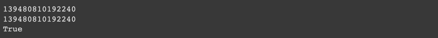 True값이 반환되었다는 뜻은 두 객체가 같은 위치에 저장되어 있다는 뜻이다.