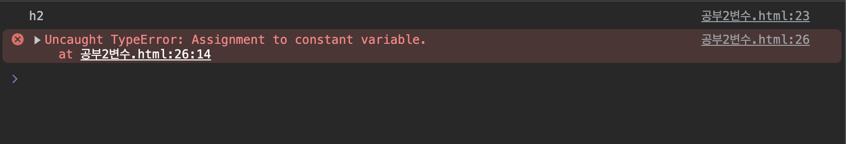 한번 선언된 상수는 다시 재정의할 수 없다.